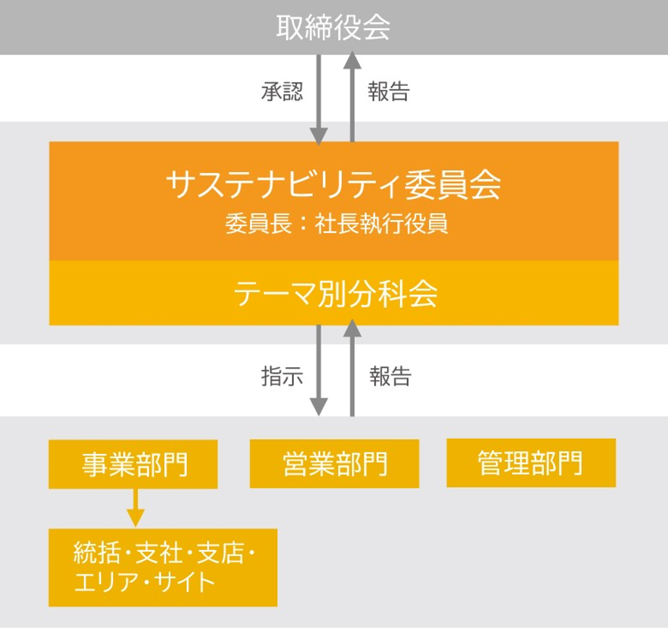 2023年度は、「人権・安全・健康」分科会は発展的解消とし、「環境」「サプライチェーン」分科会に加え、新たに「ダイバーシティ」分科会を設置しました。「ダイバーシティ」分科会では、当社単体での女性従業員・管理職比率向上に向けた施策を、「環境」分科会では新たにGXを取り組みテーマとして設定しました。
